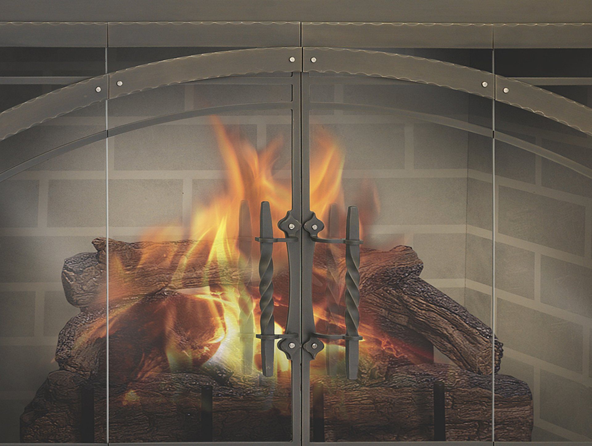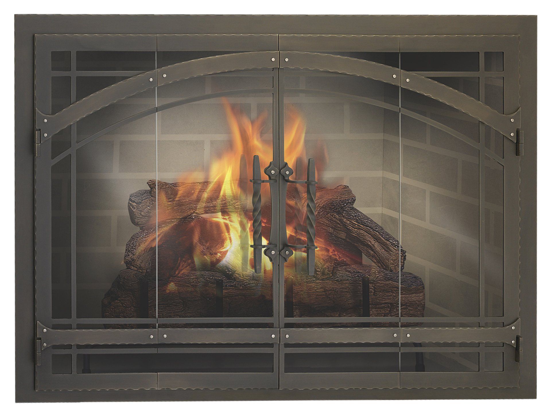 Faux arch with widow pane design and handcrafted hammered edges. The Mardrid's robust 8" handles are hand twisted over a coal fired forge.